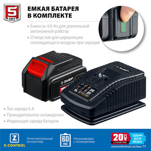 Пила сабельная аккумуляторная Зубр SPB-180 20 В 4 Ач Li-Ion с АКБ и ЗУ (SPB-180-41)