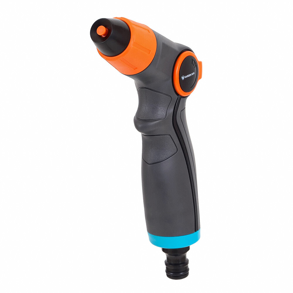 Эргономичная ручка садового пистолета выполнена из двухкомпонентного материала, что обеспечивает надежный хват и комфортный полив. Для защиты от попадания грязи внутри установлен фильтр, который можно вынуть и очистить при необходимости.