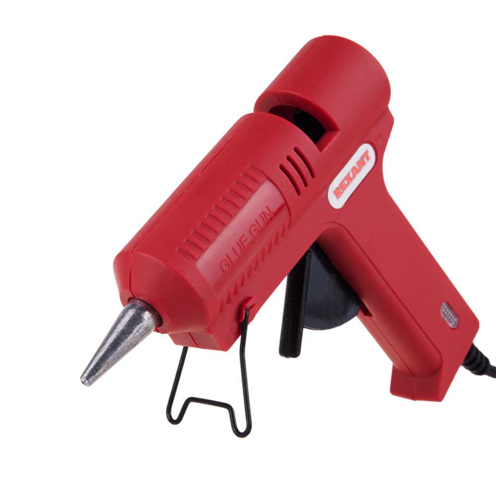 Пистолет клеевой Rexant (15 Вт, Ø7 мм) предназначен для прочной фиксации поверхностей с помощью расплавленной клеевой массы.