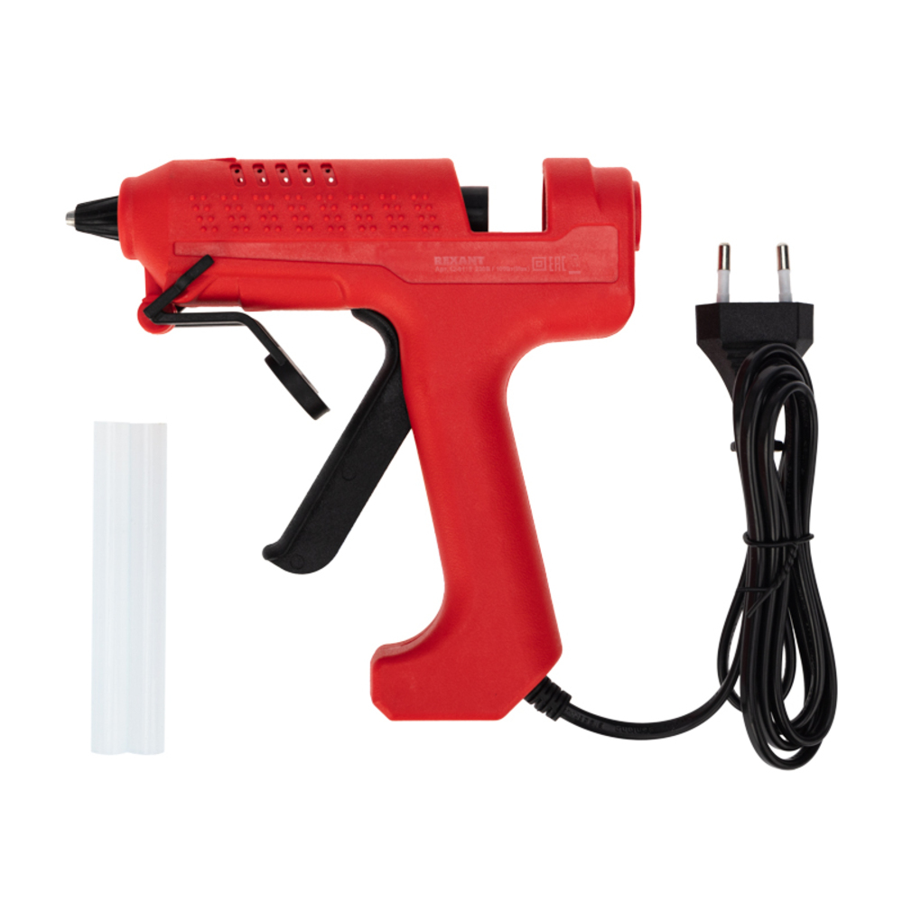 Пистолет клеевой Rexant (100 Вт, Ø11 мм, ProfiMax) предназначен для прочной фиксации поверхностей с помощью расплавленной клеевой массы.