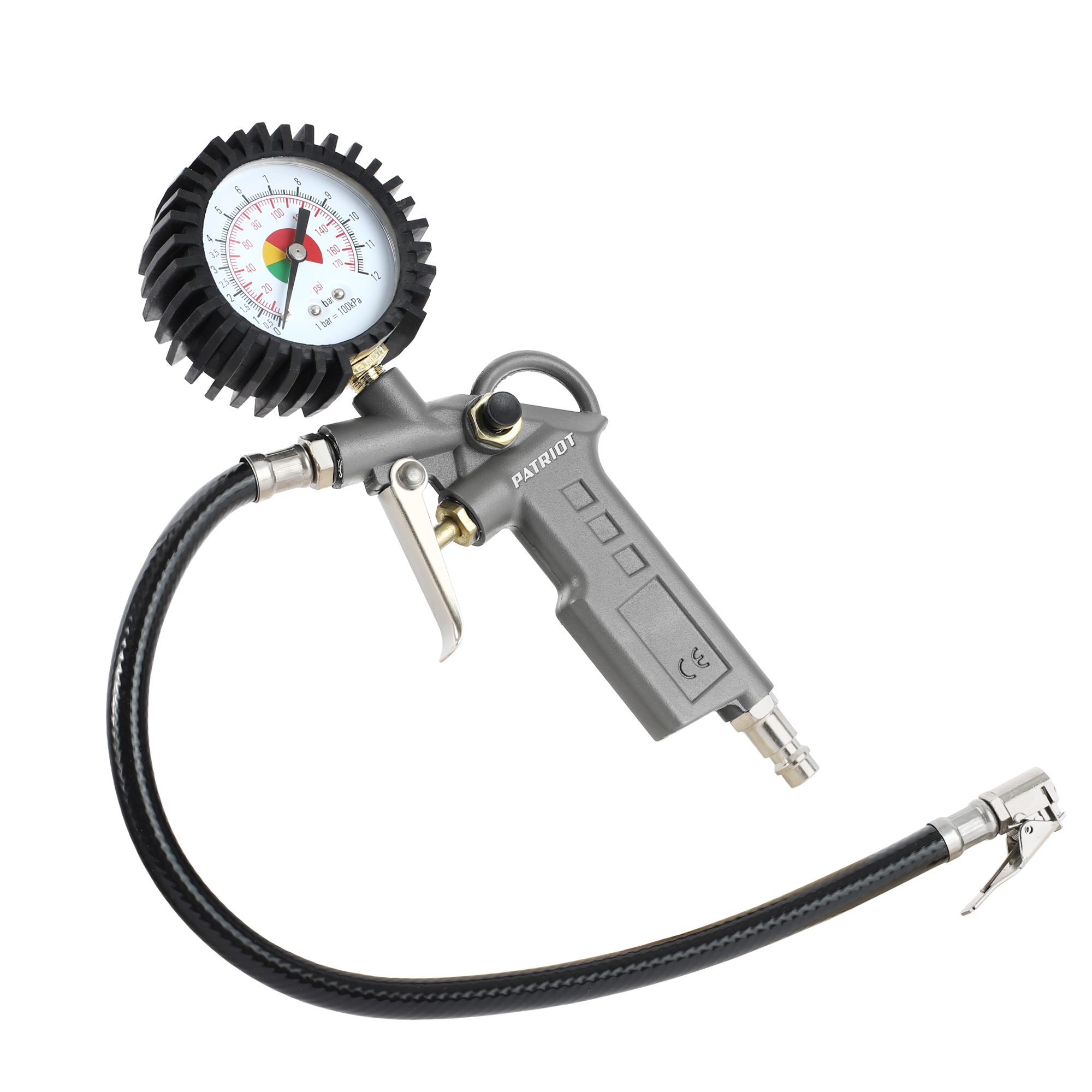 Пистолет для накачки шин Patriot GN 60D. Оснащен корпусом из алюминиевого сплава с клапаном сброса давления.