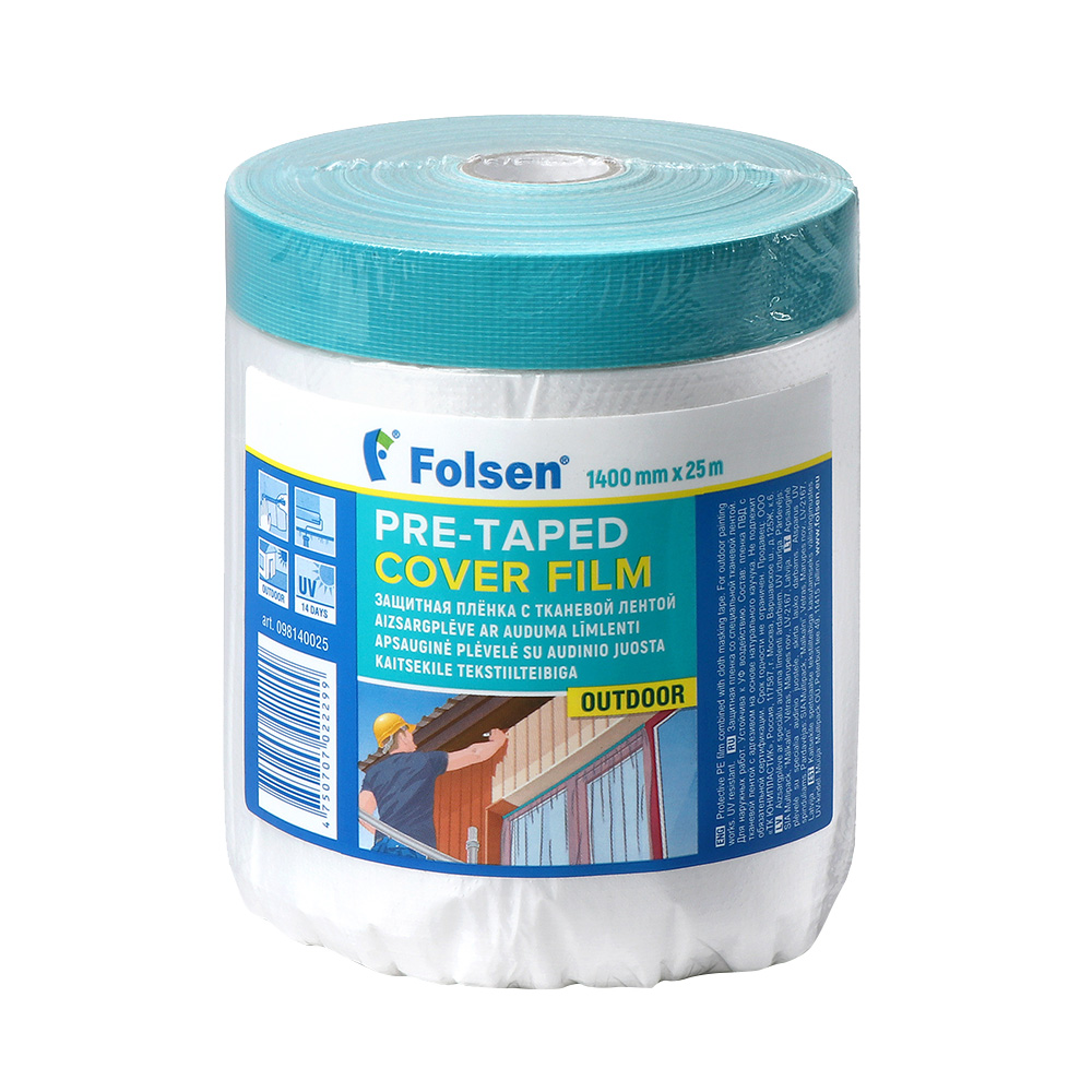 Пленка защитная Folsen для наружных работ с клейким краем 9 мкм 1,4х25 м (35 кв.м)