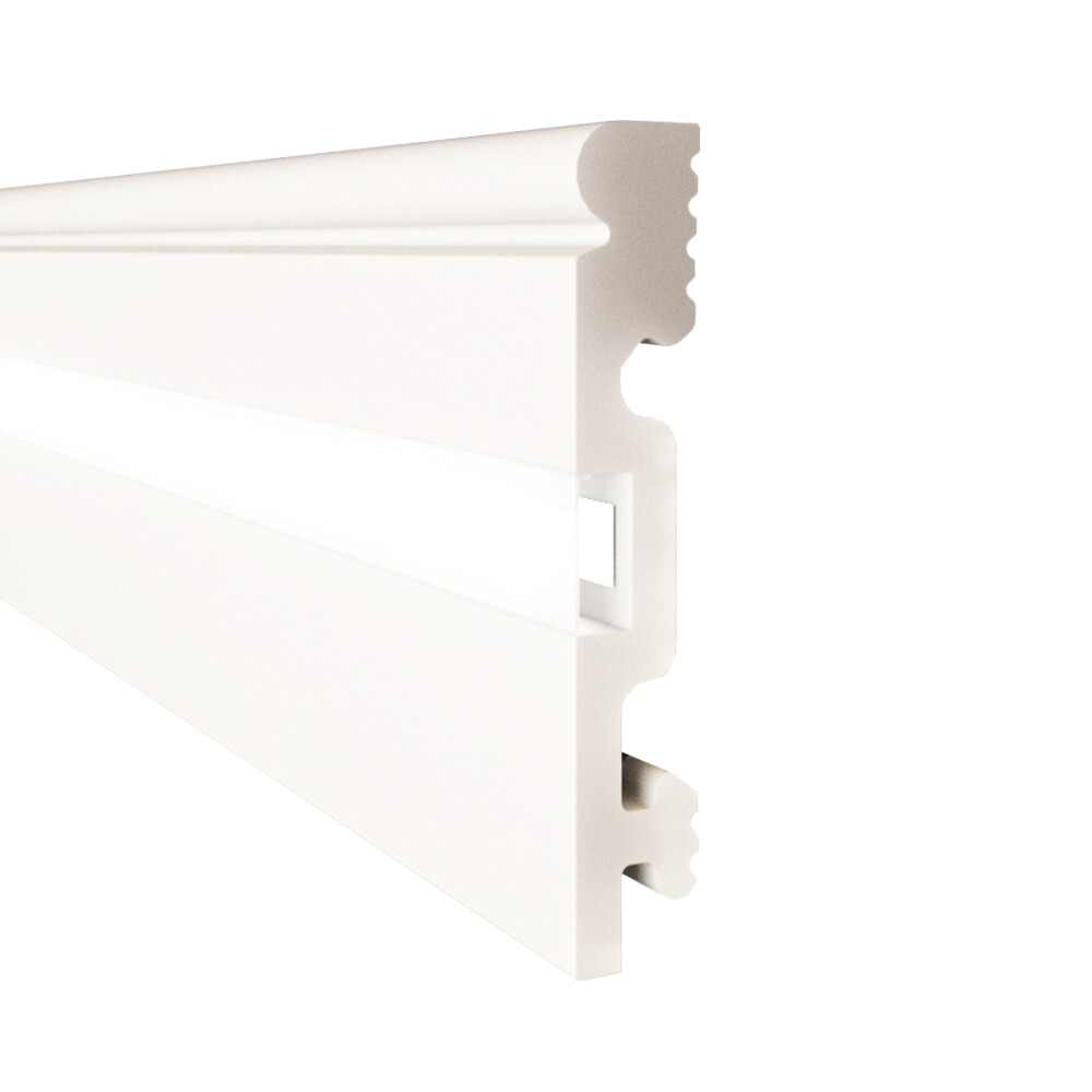 Плинтус напольный влагостойкий под покраску из полимера ультравысокой плотности UHD Polymer с кабель-каналом.