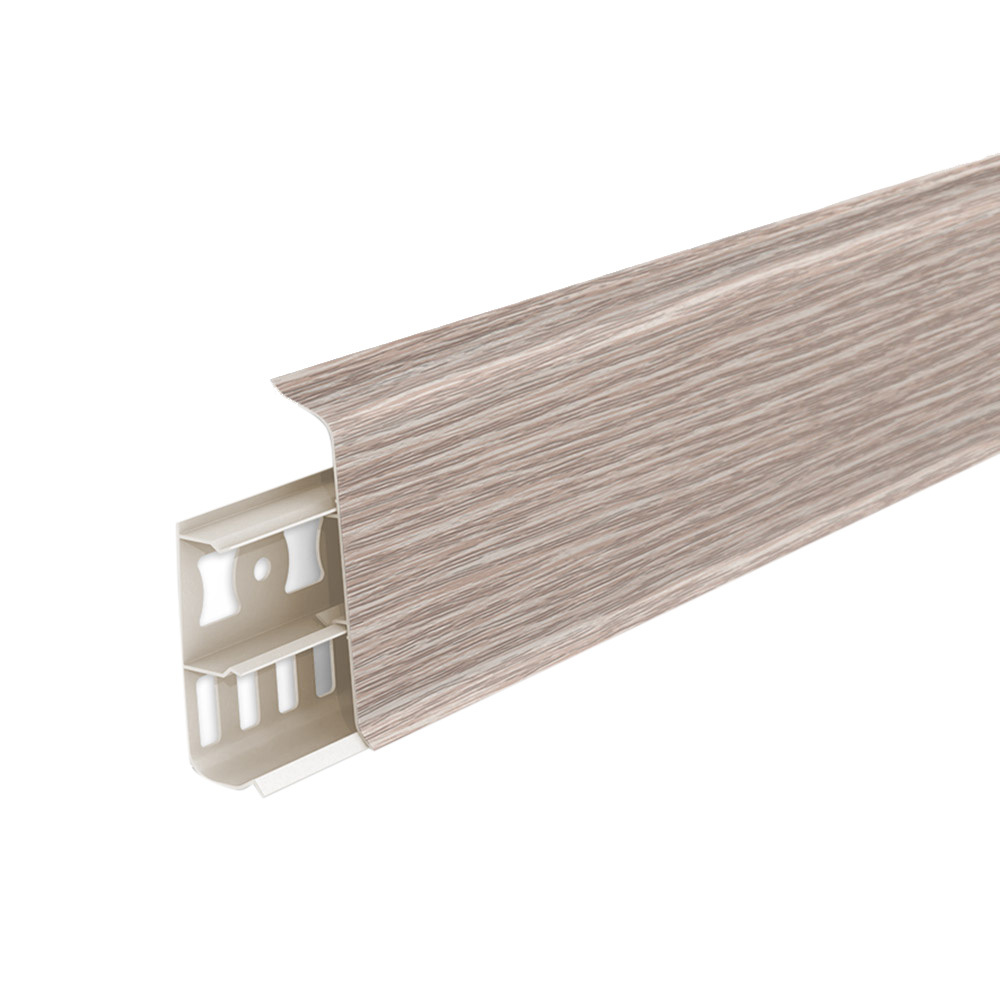 Плинтус ПВХ напольный Деконика 70 мм дуб латте 2200 мм Г-профиль с кабель-каналом