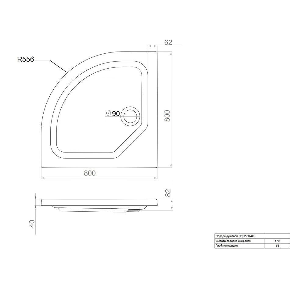 Поддон Triton акриловый 80х80х17 см полукруг белый низкий (Щ0000038720)