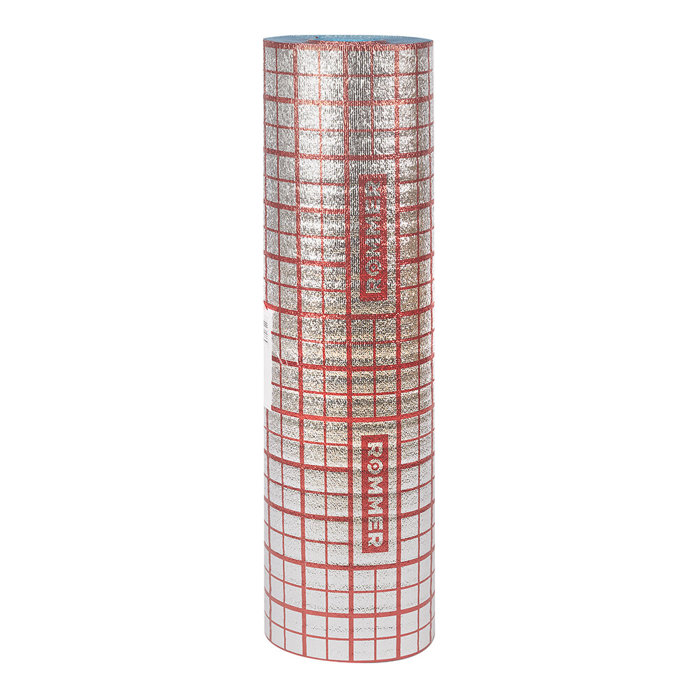 Подложка Rommer с металлизированным покрытием используется под бетонной стяжкой для теплых полов в качестве отражающей изоляции, предотвращающей теплопотери от нагревательных элементов пола к перекрыт…