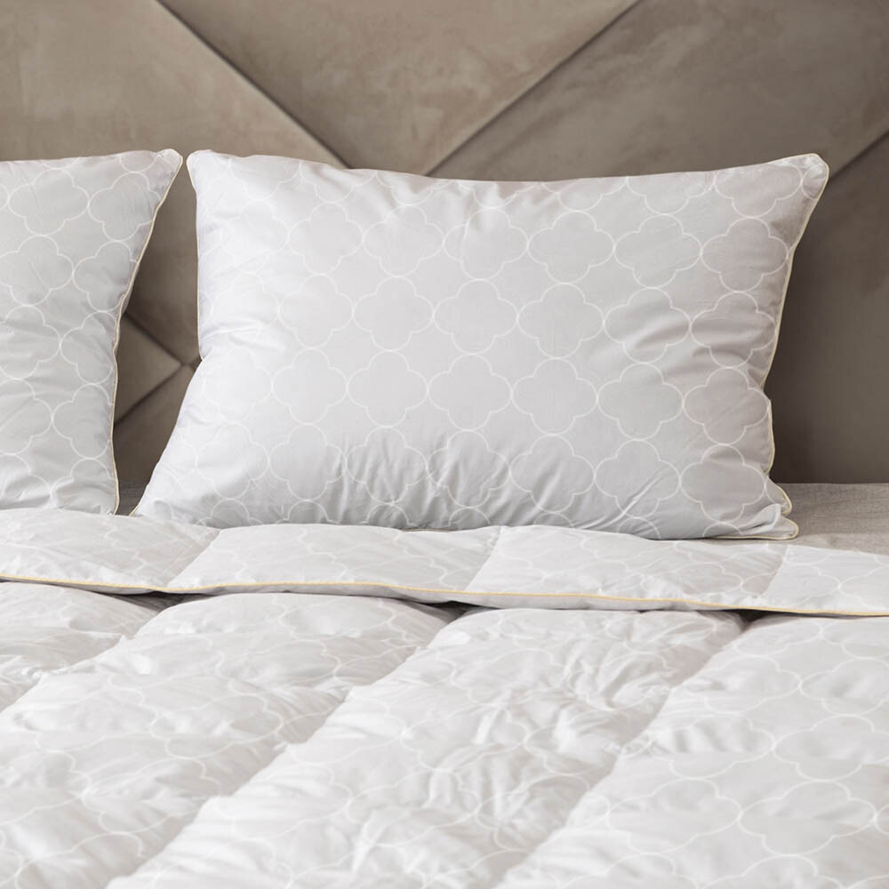 Предназначена для комфортного сна. Универсальная подушка средней степени поддержки. Высота подушки 13-15 см, подходит для сна в любом положении: на боку, на спине и на животе Наполнитель из сибирского гусиного пуха «дышит», быстро впитывает и испаряет влагу, мгновенно восстанавливает и надолго сохраняет объем изделия.
