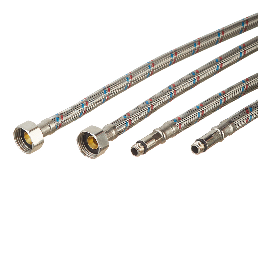 Состав: Резиновый шланг (EPDM) в оплетке из нержавеющей стали AISI 202, гайки и штуцер — латунь.