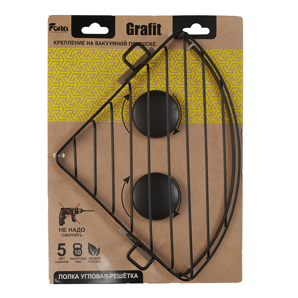 Полка для ванной Fora Grafit угловая 220х220х140 мм металл черная (FOR-GRA035/7076)