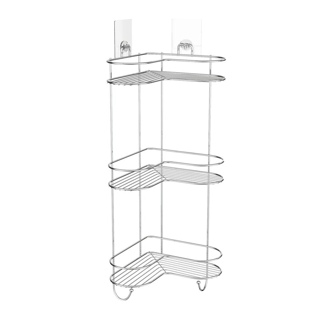 Полка для ванной Kleber Lite угловая трехъярусная с крючками 240х240х550 мм металл/силикон хром (KLE-LT056)