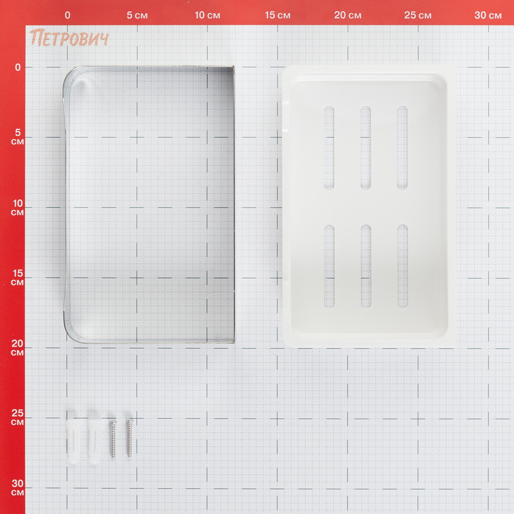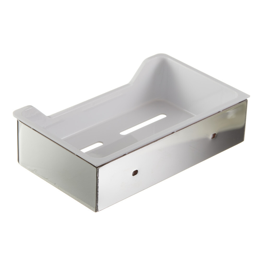Полка пластиковая, настенная. Выполнена в цвете хром. Покрытие устойчиво к коррозии. Монтируется к стене при помощи крепления, входящего в комплект.