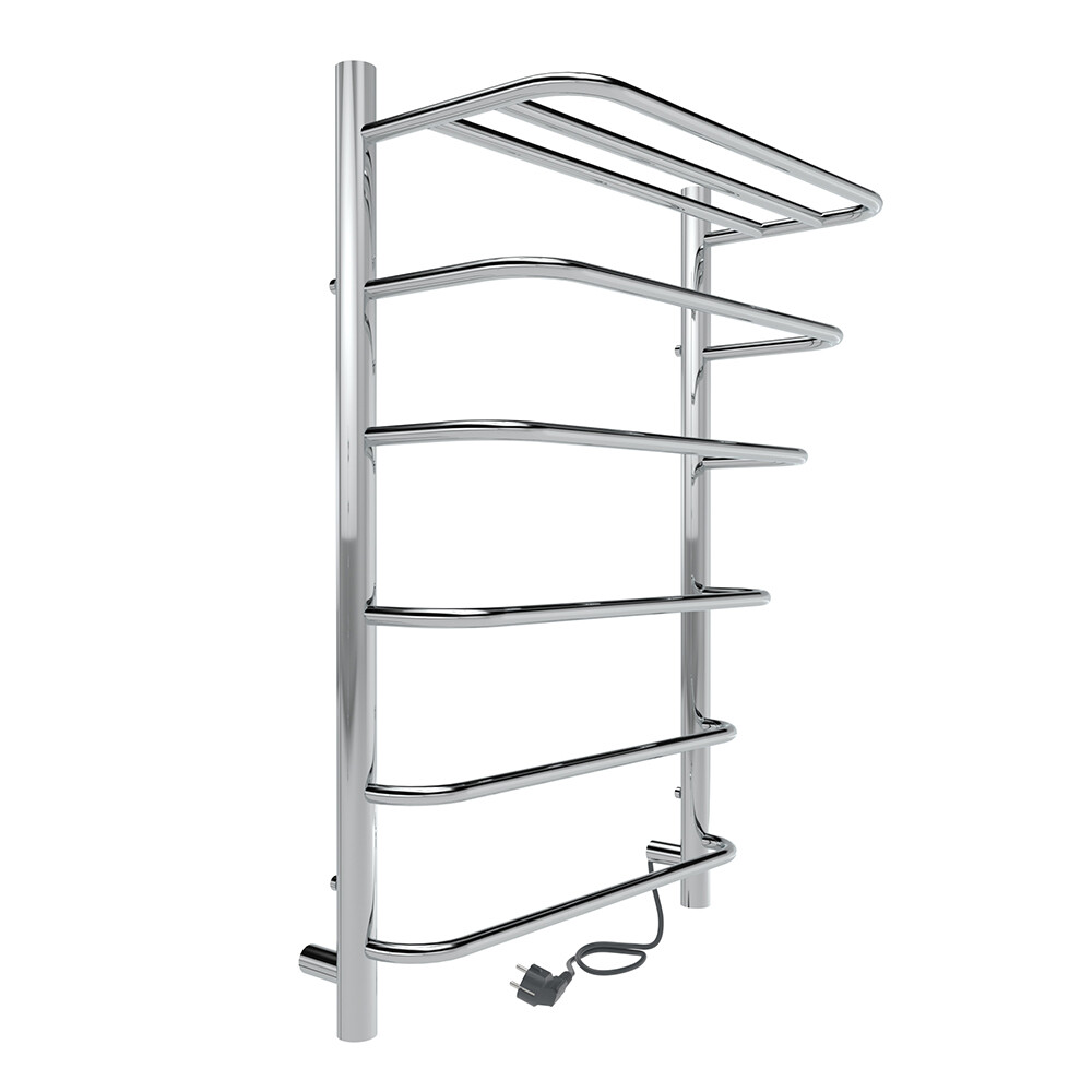 Полотенцесушитель электрический Indigo оснащен кнопкой включения на нижней части стойки. Универсальность изделия предусматривает подключение через прямой провод, который переставляется на нужную вам сторону или скрытое подключение без покупки дополнительного переходника. Длина прямого провода 1,1 метр. Специальная технология нагревательного кабеля защищает полотенцесушитель от перегрева, что влияет на длительность срока службы. В изделии из-за конструктивной особенности не греются две перекладины в полке.