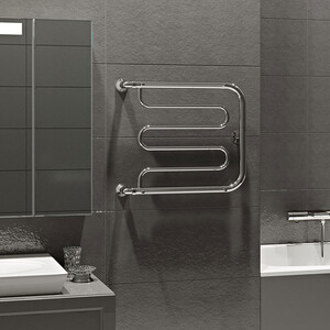 Полотенцесушитель водяной MyFrea 500х500 мм фокстрот с боковым подключением 500 мм с полкой хром