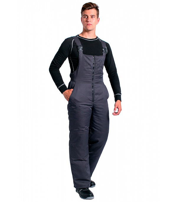 Утепленный полукомбинезон прямого силуэта, с центральной застежкой на открытую тесьму «молния», на грудке слева накладной карман, регулируемы бретели. На верхней части – два прорезных боковых кармана с наклонным входом. На нижней части усиленные подкладки в области колена. Предназначены для защиты работающих от пониженных температур в различных отраслях промышленности, а также производственных загрязнений.