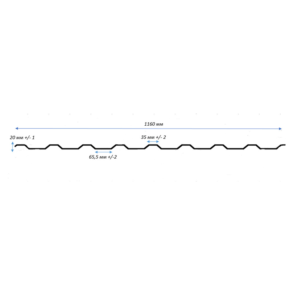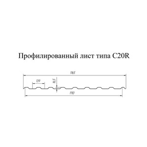 Профнастил С20R 1,15х2 м 0,45 мм оцинкованный