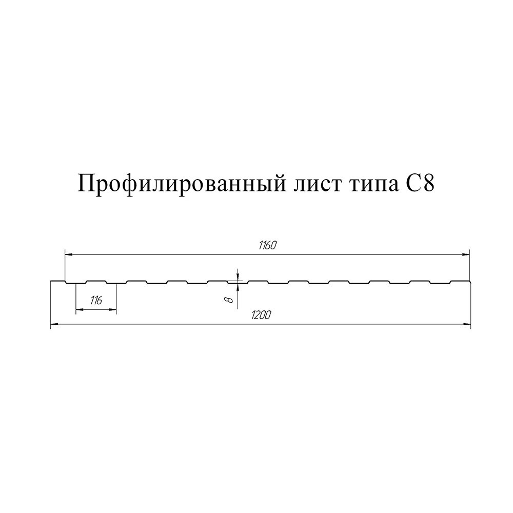 Профнастил С8 1,2х2 м 0,33 мм графитовый серый RAL 7024