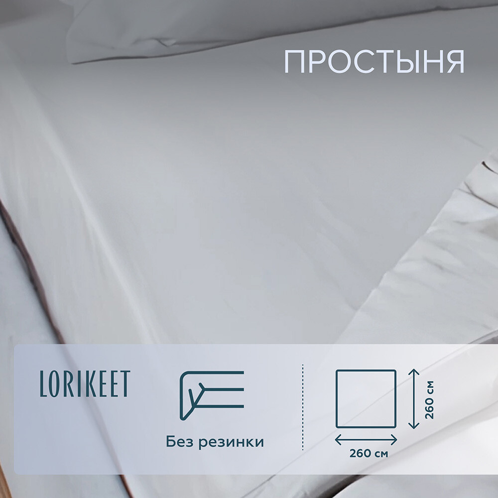 Простыня 260х260 см сатин серая Lorikeet Solo