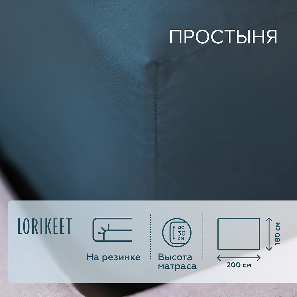 Простыня на резинке 180х200х30 см сатин изумруд Lorikeet Solo