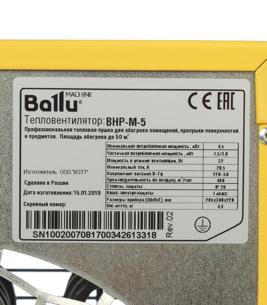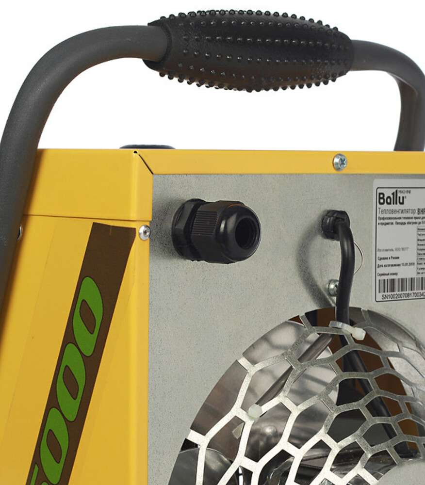 Тепловая электрическая пушка идеально подходит для общего обогрева строящихся, ремонтируемых объектов и помещений площадью до 50 м². При мощности потребления 4.5 кВт повышение температуры воздуха составляет до 34°C. Пушка имеет 3 режима работы: полная мощность нагрева, 1/2 мощность нагрева, а также режим вентиляции. Оснащена термостатом с функцией ручного перезапуска для исключения бесконтрольного возобновления работы после экстренного отключения.
