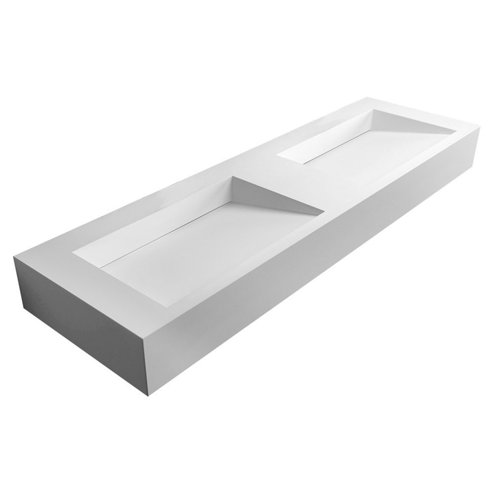 Раковина подвесная Abber Stein AS2643-1.2 двойная, белая матовая. Материал — искусственный камень. Форма прямоугольная, тип установки подвесной.