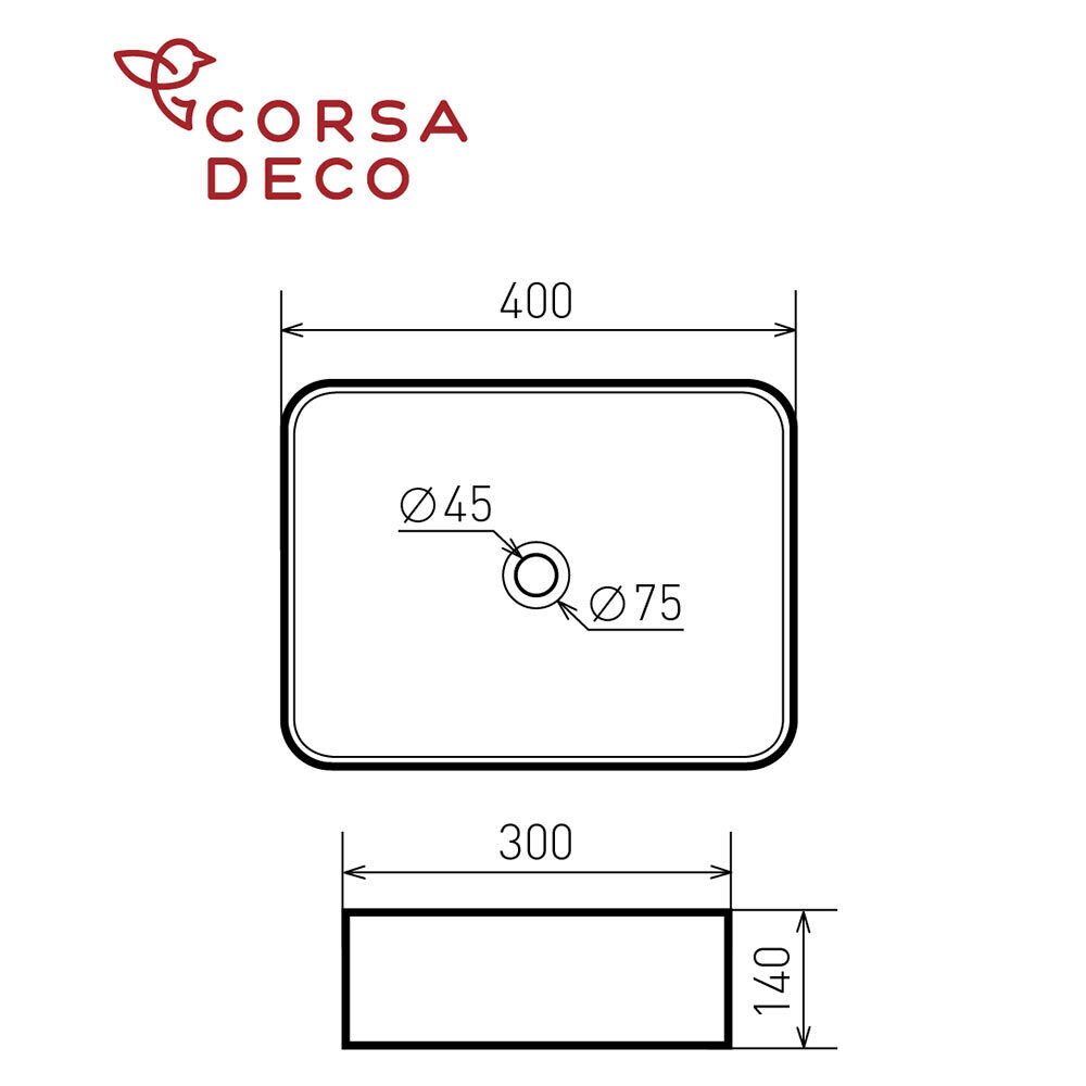 Раковина Corsa Deco WX200 40 см накладная белая (ABWX40R)