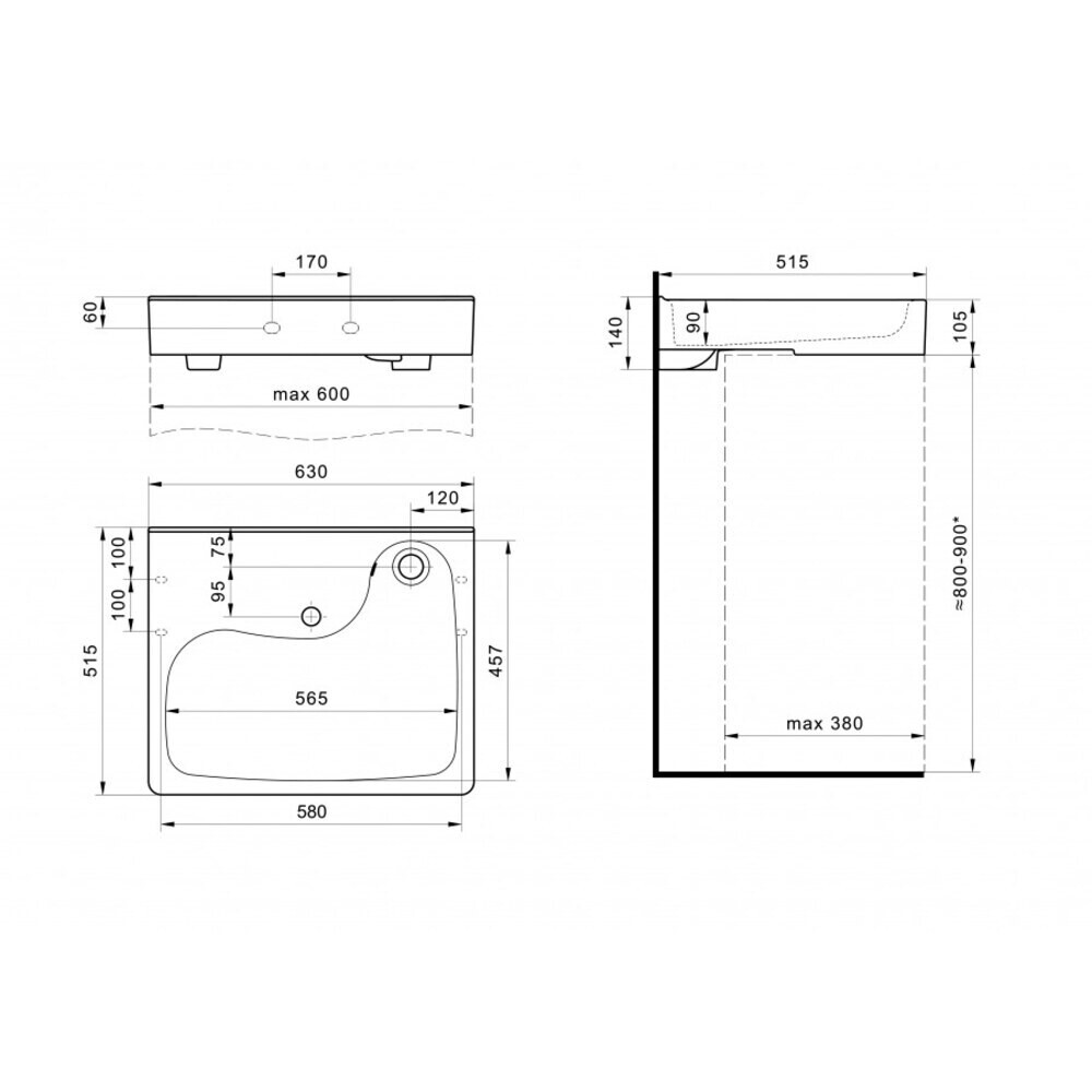 Раковина Клио предназначена для установки над стиральной машиной. Специальная конструкция низа позволяет не только установить умывальник над плоской поверхностью стиральной машины, но и разместить все необходимые сантехнические коммуникации для подвода и слива воды.