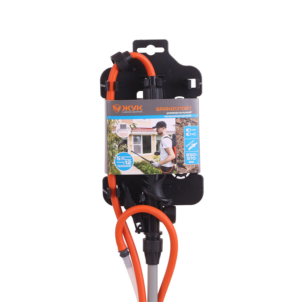 Предназначен для комплектации опрыскивателей разных производителей, благодаря переходным гайкам, которые идут в комплекте. Регулируемая длина трубки брандспойта позволяет обрабатывать растения и деревья разной высоты.