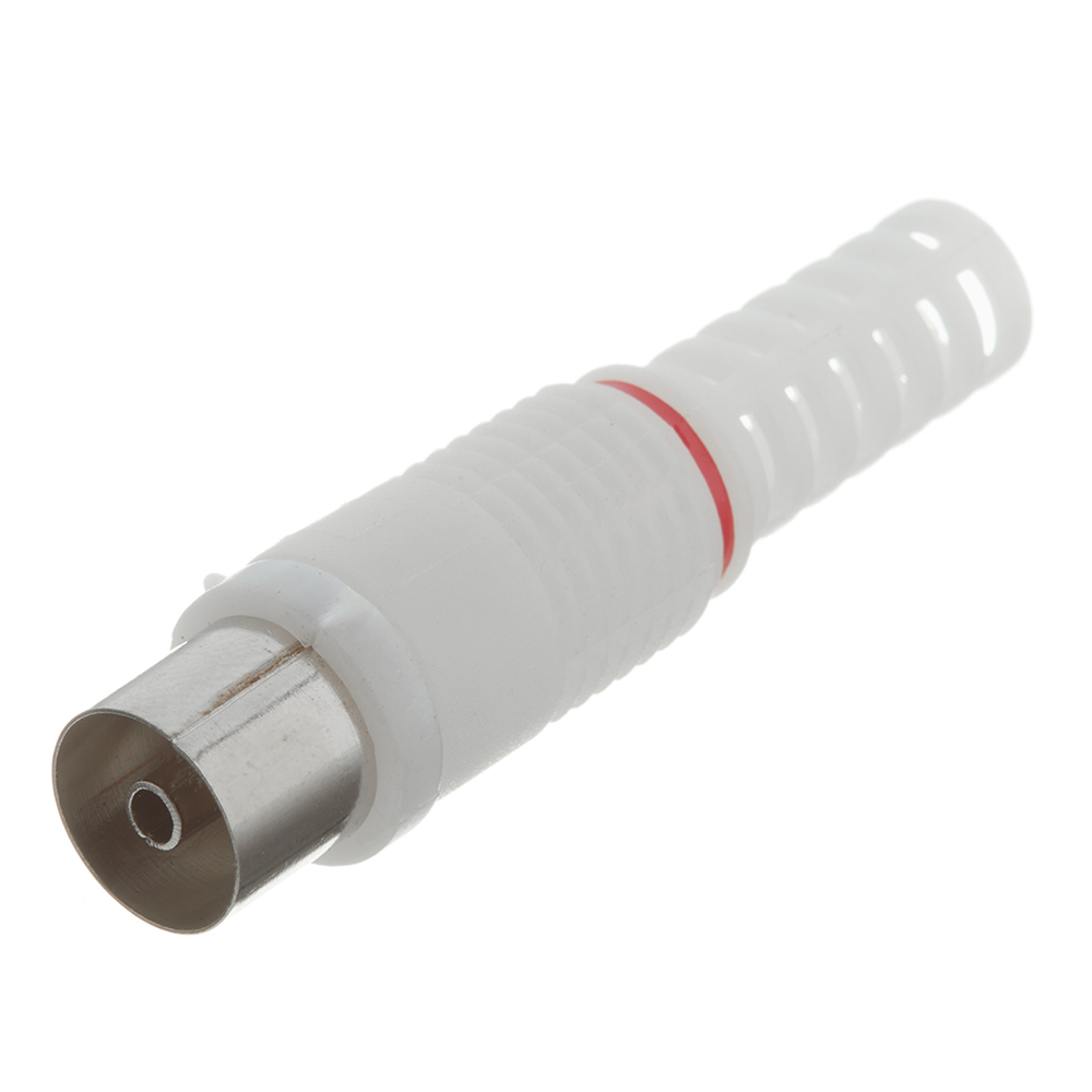 Предназначен для подключения эфирного, спутникового и кабельного телевидения с помощью радиочастотного кабеля. Такой разъем монтируется на телевизионный кабель и передает идущий по кабелю сигнал на ТВ устройства. Установка провода в разъеме производится с помощью винтового зажима, что значительно сэкономит время на монтаж. Корпус разъема и контакты изготовлены из никелированного металла, а колпачок из белой пластмассы. Колпачок имеет амортизатор кабеля (в народе именуемый «хвостом»), который позволяет кабелю гнуться только с безопасным радиусом изгиба. Простой монтаж и надёжное соединение, обеспечат защиту от помех и внешних воздействий.