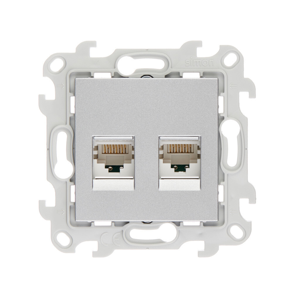 Розетка компьютерная Simon 24 Harmonie встраиваемая алюминий 2хRJ45 (2450593-033)