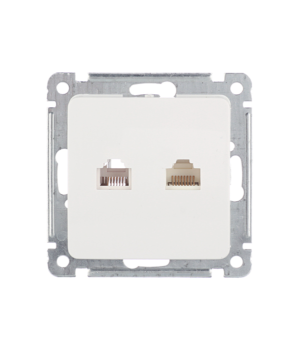 Розетка компьютерная/ телефонная Hegel Master встраиваемая белая RJ11/ RJ45 (РСКТ-440)
