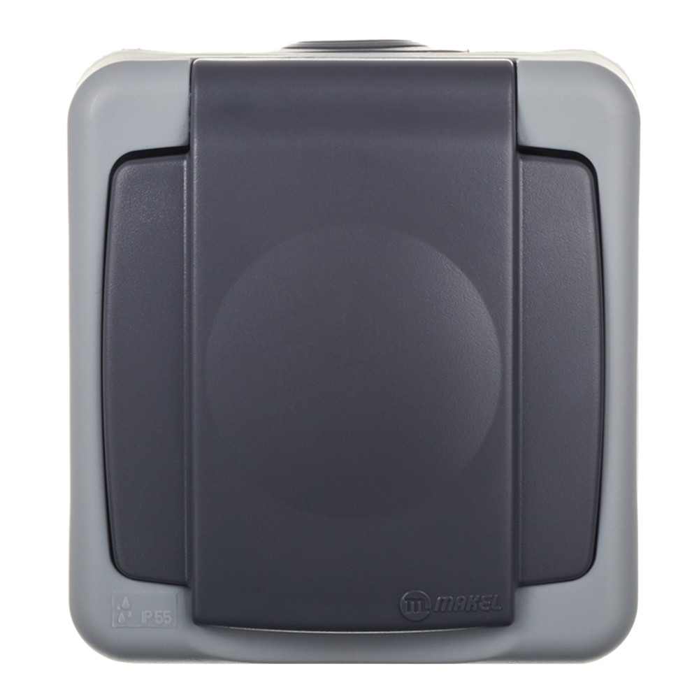 Розетка Makel накладная серая с крышкой (36064029)