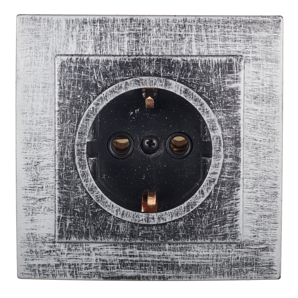 Розетка с рамкой Lavelly Antico RS16-133-S скрытая установка серебро с заземлением