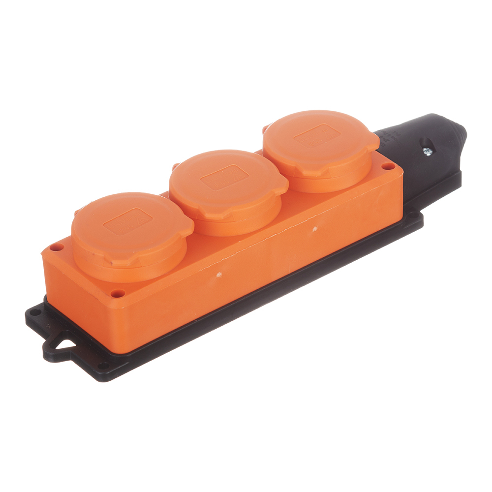 Розетка штепсельная UNIVersal тройная с заземлением IP44 оранжевая