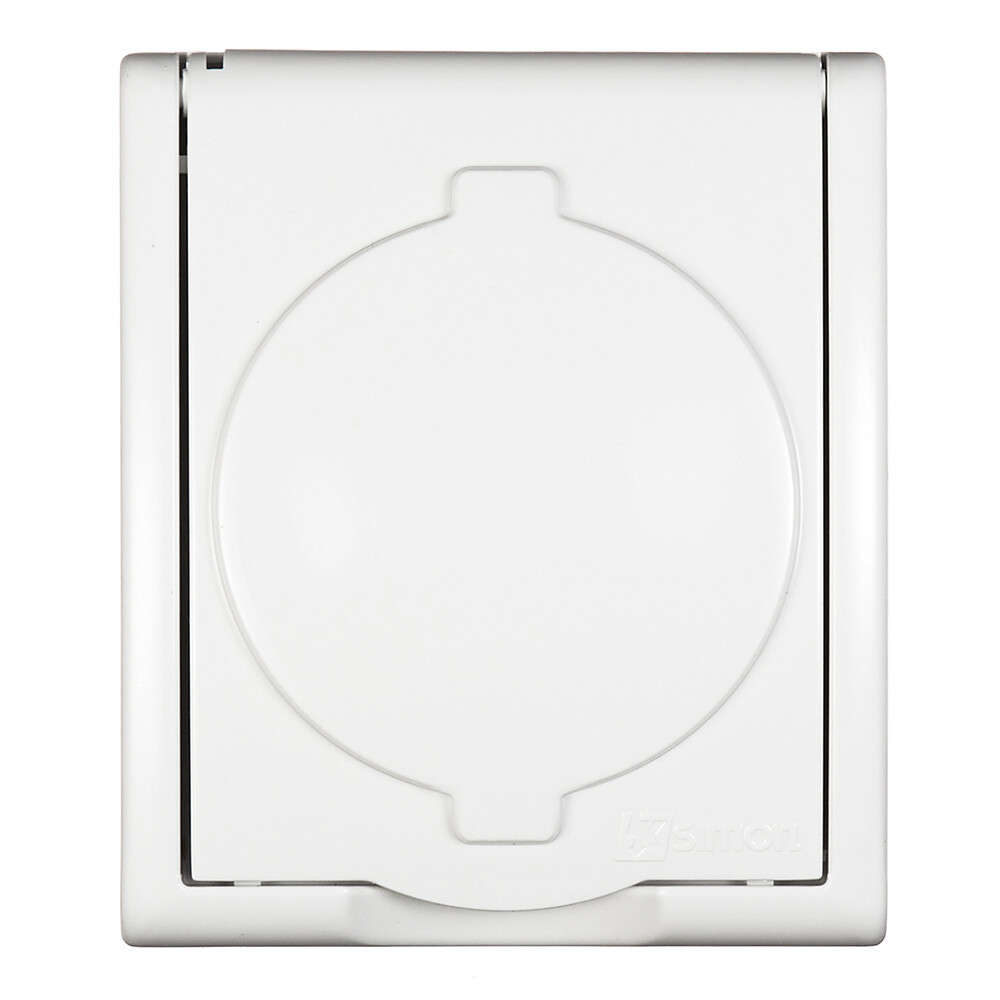 Розетка Simon 15 Aqua накладная белая со шторками с крышкой (1594432-030)