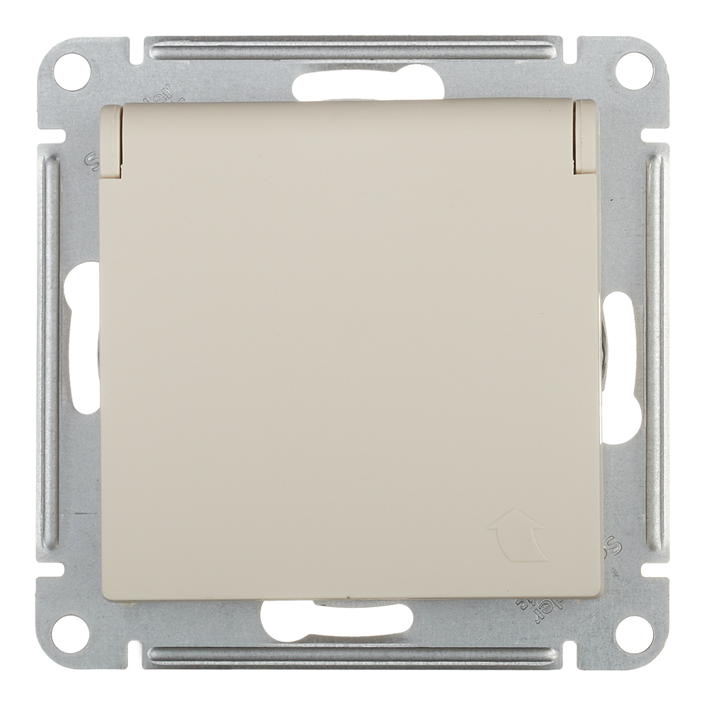 Розетка Systeme Electric AtlasDesign встраиваемая бежевая со шторками с крышкой (ATN000246)