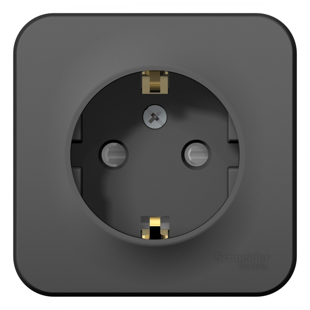 Розетка Systeme Electric (ранее Schneider Electric) Blanca (антрацит, открытой установки) одноместная, с заземлением и шторками предназначена для сетей до 250 В, на ток до 16А. Шторки открываются только при одновременном равномерном давлении в оба отверстия и препятствуют проникновению посторонних предметов. Они обеспечат дополнительную безопасность в доме, где есть дети.