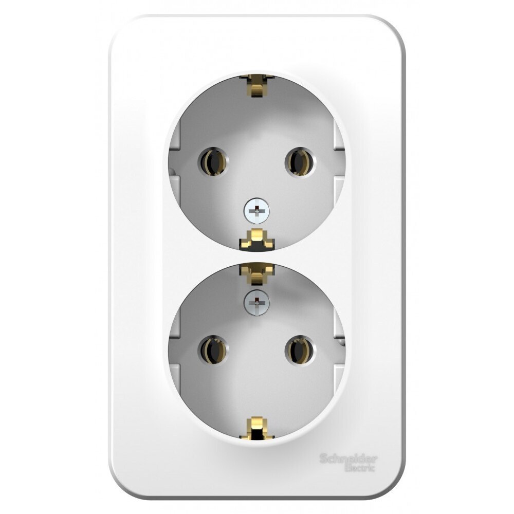 Розетка Systeme Electric (ранее Schneider Electric) Blanca (белый, открытой установки) двухместная, с заземлением, без шторок предназначена для сетей до 250 В, на ток до 16А. Двухместная розетка позволяет подключить два устройства в одном месте. Заземление обеспечивает безопасность при косвенном прикосновении. Она изготовлена из ABS-пластика, проста в установке и удобна в применении.