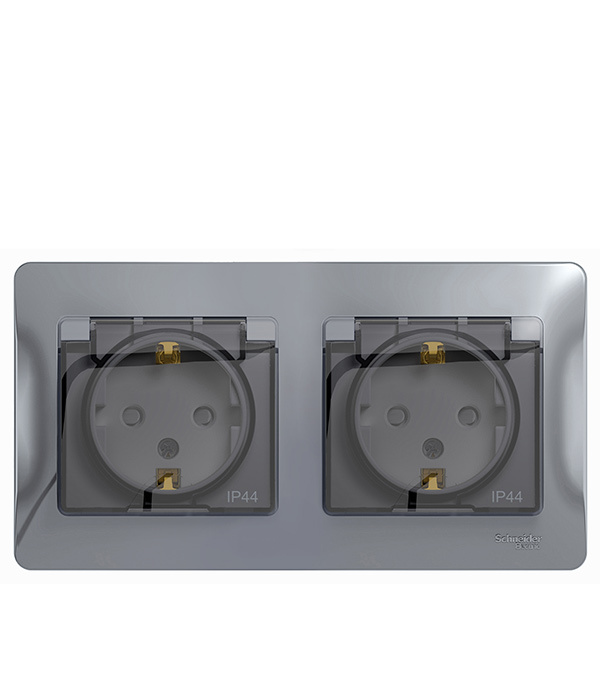 Розетка Systeme Electric Glossa встраиваемая алюминий со шторками с крышкой (GSL000347)