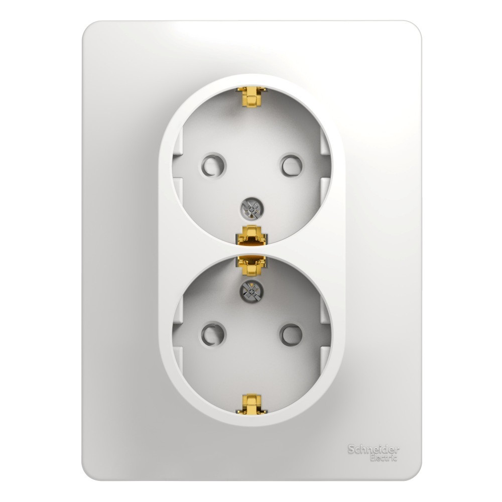 Розетка двойная Systeme Electric (ранее Schneider Electric) серии Glossa (в сборе) с заземлением и шторками подходит для сетей 250 В, на ток 16 А.