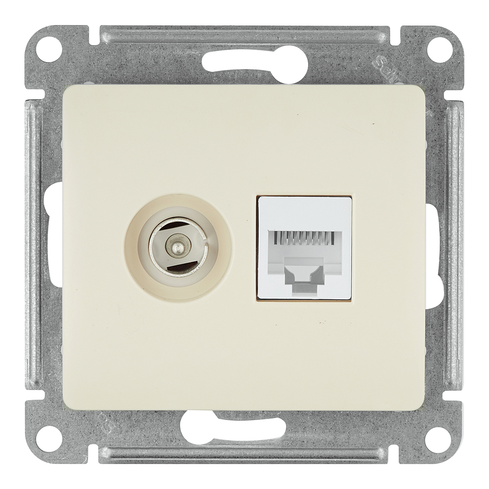 Розетка телевизионная/ компьютерная Systeme Electric Glossa встраиваемая бежевая TV/ RJ45 (GSL000289)