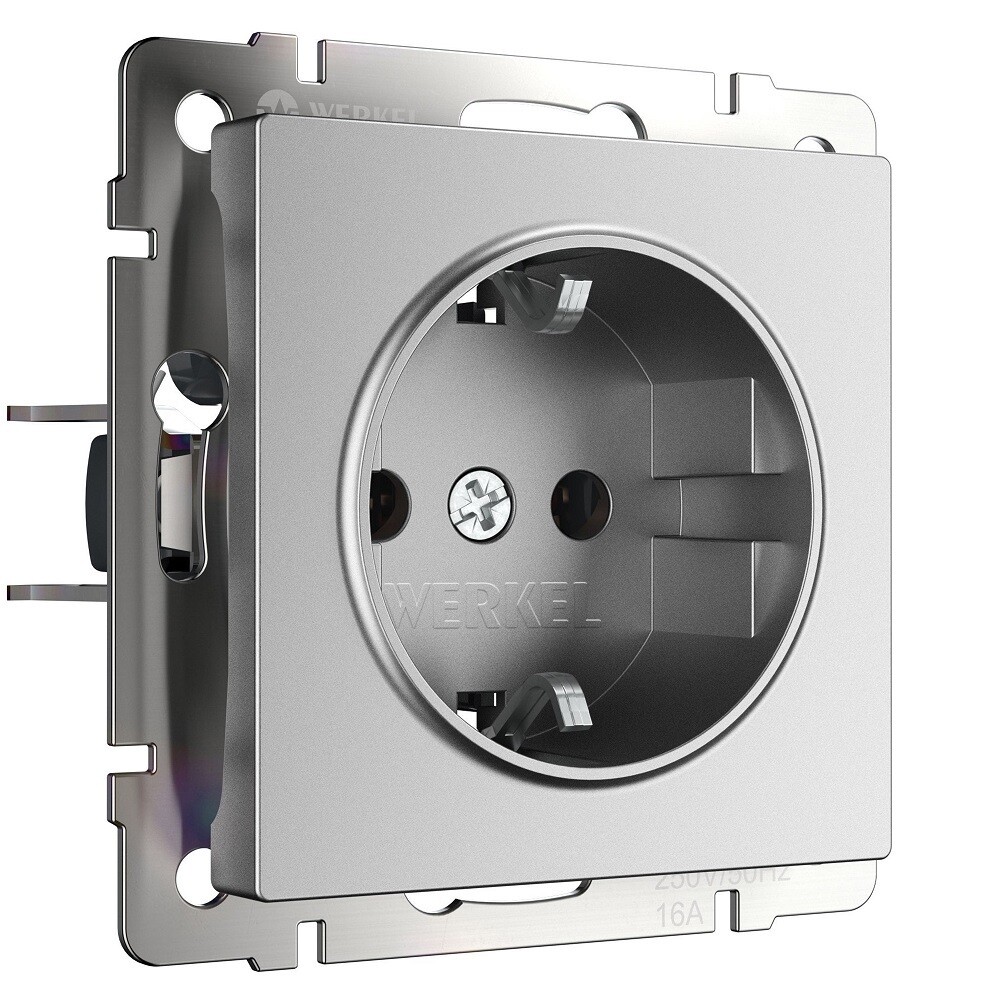 Розетка Werkel встраиваемая серебряная матовая со шторками (a063613)