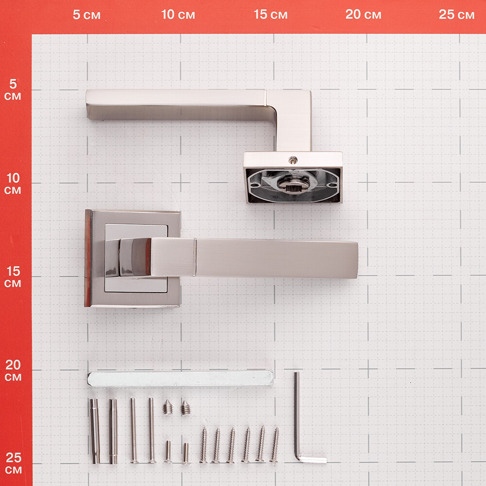 Ручка дверная Corsa Deco Clover квадратная розетка матовый никель/хром (990323)