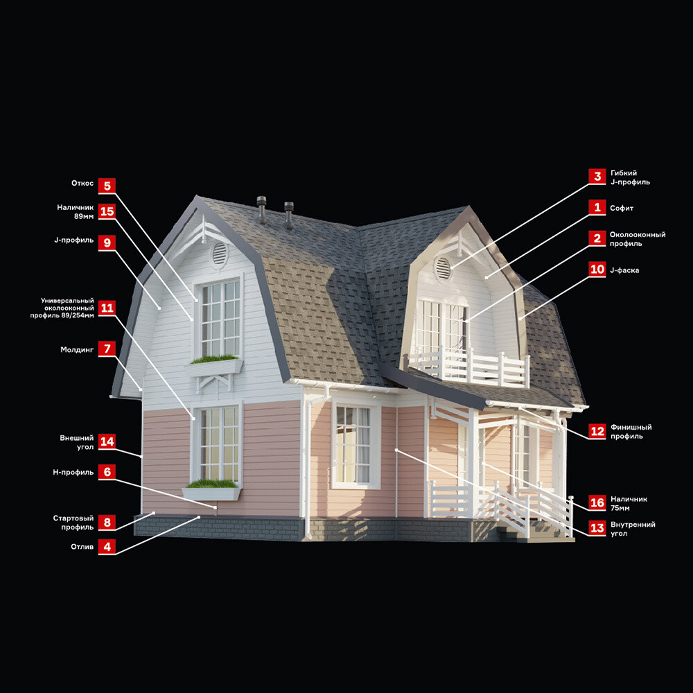 Предназначен для прямолинейной горизонтальной установки на стены жилых, производственных, хозяйственных зданий, торговых предприятий. Сайдингом могут облицовываться деревянные, кирпичные, железобетонные здания, а также каркасные конструкции.