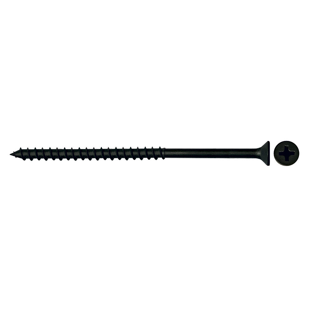 Метиз представляет собой классический остроконечный шуруп с резьбой по всему стержню. Имеет фосфатное покрытие, надежно защищающее от коррозии, плоскую шляпку с крестообразным шлицем Phillips № 2. Подходит для потайного монтажа — может быть утоплен полностью в поверхность скрепляемых материалов.
