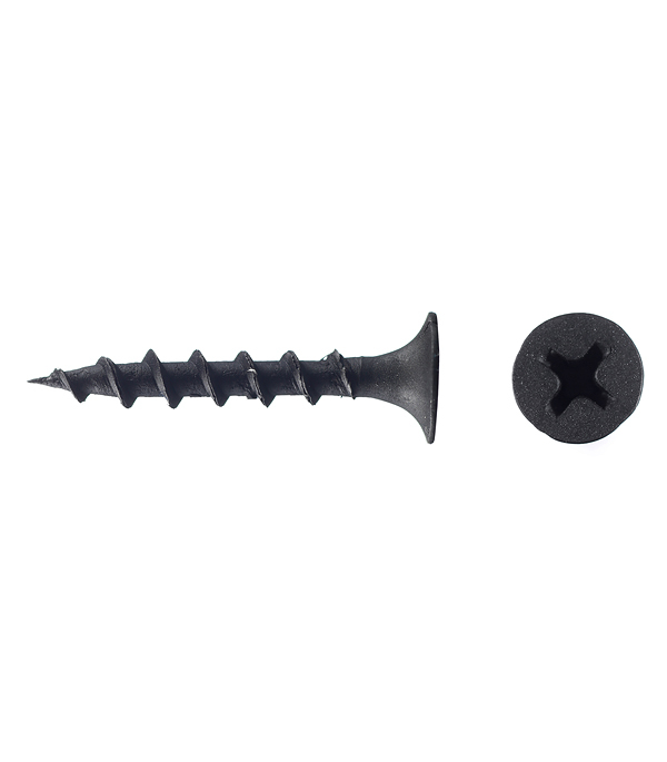 Саморезы имеют потайную головку с крестообразным шлицем PH2, острый наконечник и редкую резьбу. Производятся из углеродистой стали с последующим оксидированием для защиты от коррозии.