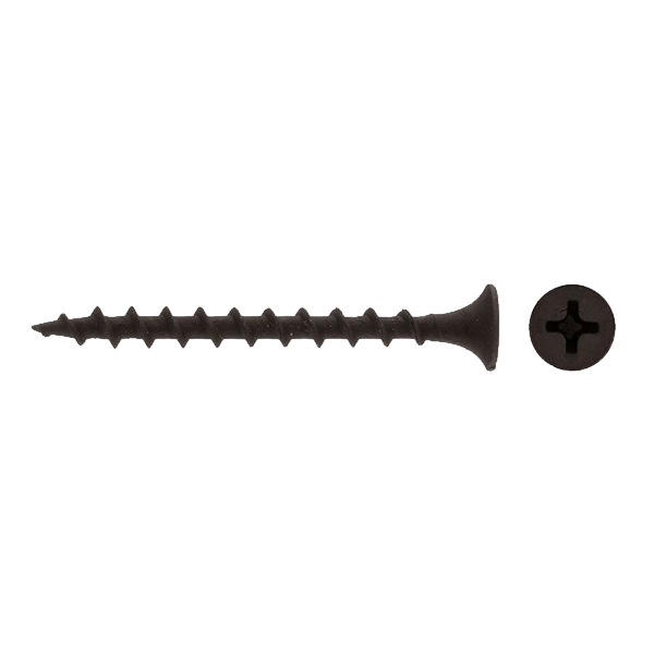Саморезы имеют потайную головку с крестообразным шлицем PH2, острый наконечник и редкую резьбу. Производятся из углеродистой стали с последующим оксидированием для защиты от коррозии.