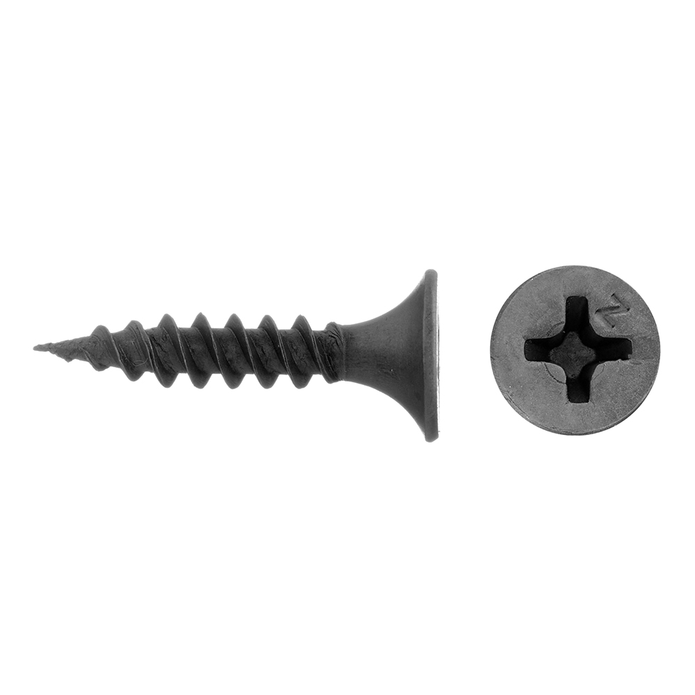 Саморезы имеют потайную головку с крестообразным шлицем PH2, острый наконечник и частую резьбу. Производятся из углеродистой стали с последующим оксидированием для защиты от коррозии.