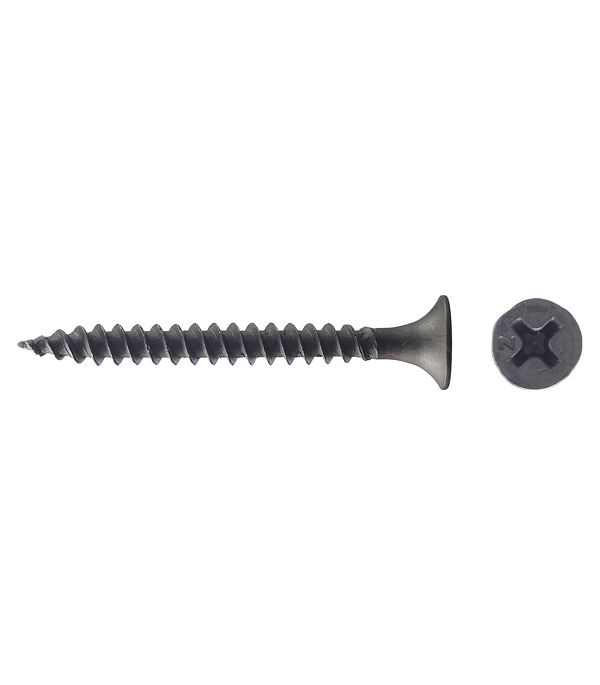 Саморезы имеют потайную головку с крестообразным шлицем PH2, острый наконечник и частую резьбу. Производятся из углеродистой стали с последующим оксидированием для защиты от коррозии.