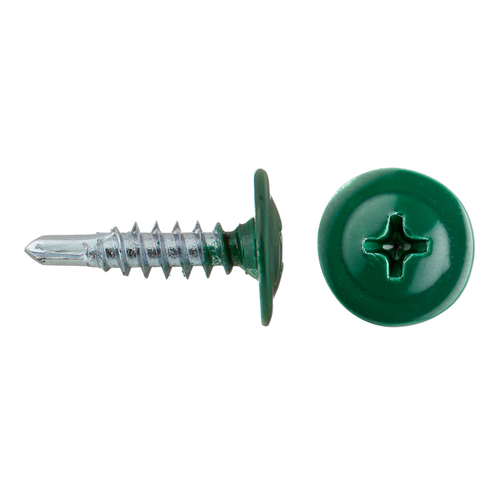 Главная / Каталог / Крепеж / Саморезы и шурупы / Саморезы по металлу / Саморезы с прессшайбой / Саморезы клопы 16×4,2 мм с буром Daxmer (200 шт.) зеленый RAL 6005