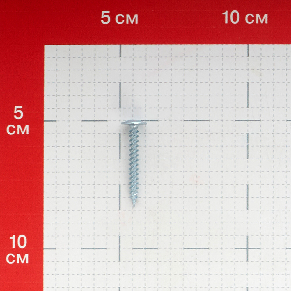 Саморезы имеют полусферическую головку с прессшайбой и крестообразным шлицем PH2, резьбу с мелким шагом и острый наконечник. Производятся из оцинкованной стали.